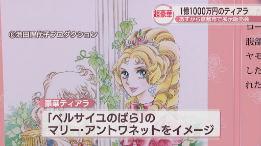 Desde ontem, dia 26 de Jeneiro, a loja Morphee Namba localizada em Kurashiki província de Okayama, está comemorando seu aniversário, com uma exposição e vendas da tiara inspirada em uma ilustração do clássico shoujo mangá da Rosa de Versalhes (ベルサイユのばら). Atualmente, a tiara está custando 110 milhões de ienes, o equivalente a 3.650.699,20 Reais na cotação atual.